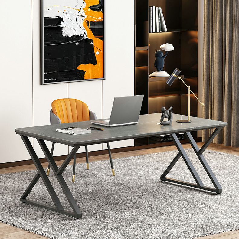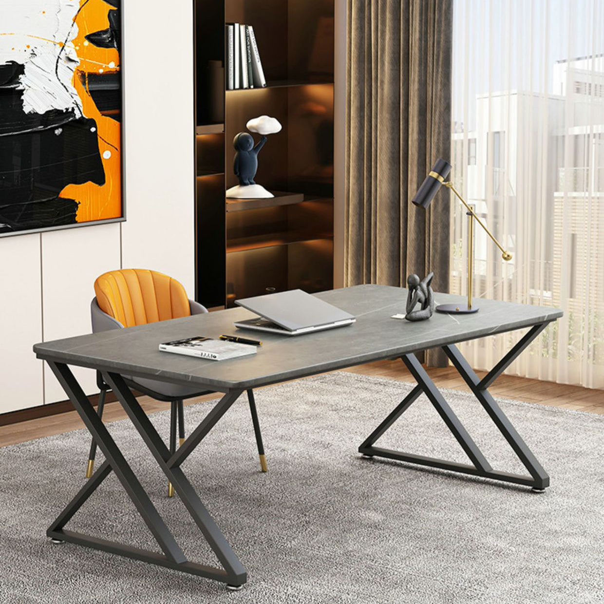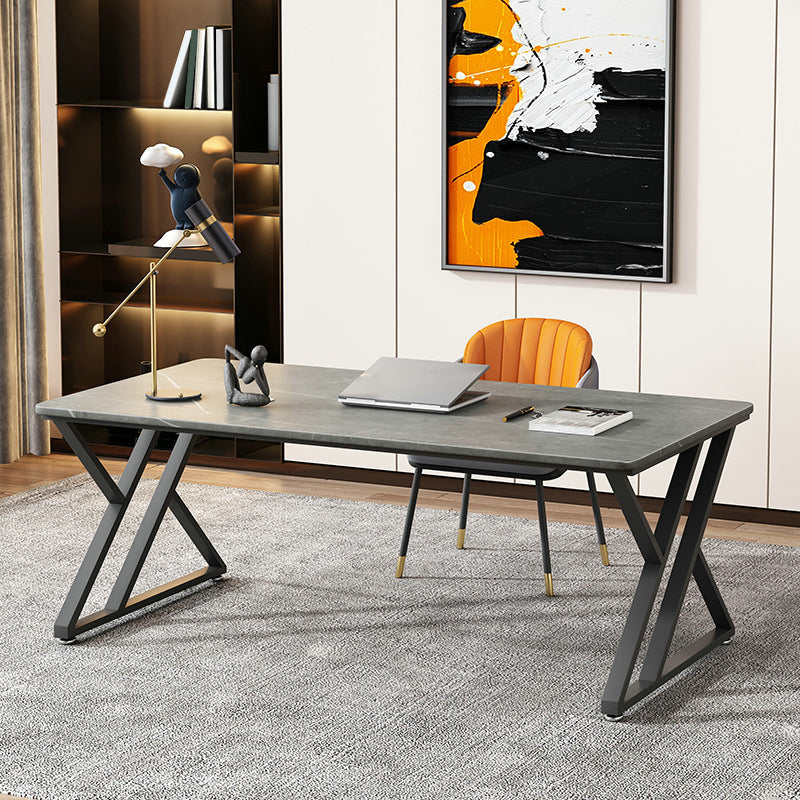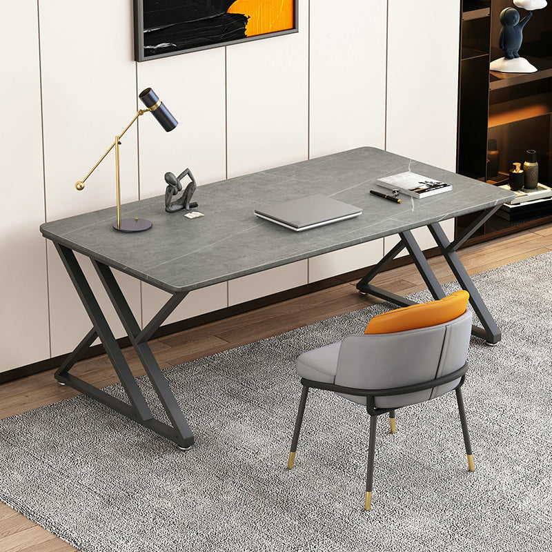 Escritorio de oficina contemporáneo escritorio de escritura gris rectangular con patas de metal