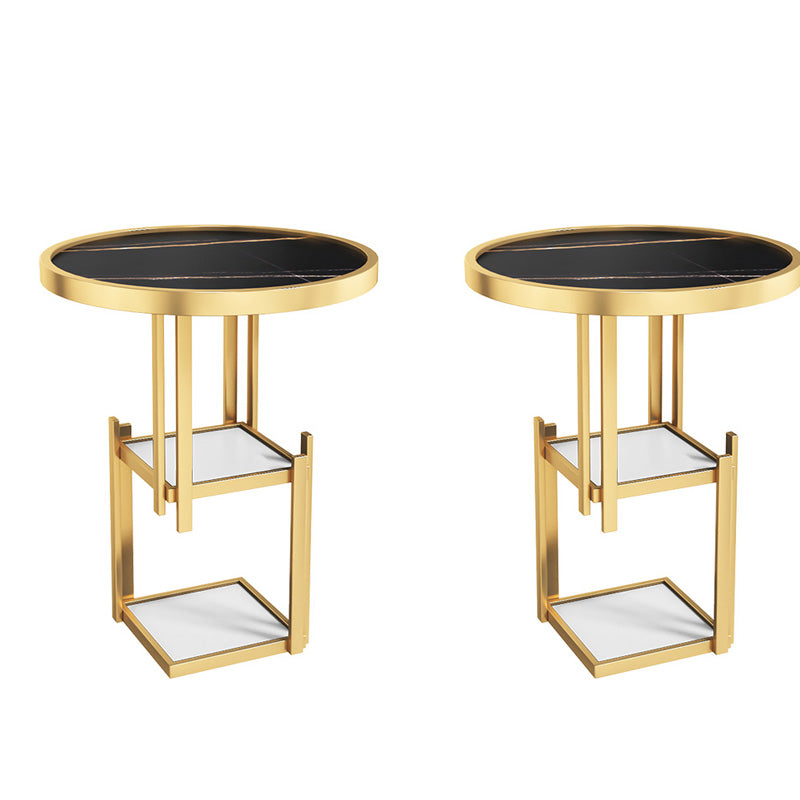 Mesa nocturna de metal nocturna contemporánea de almacenamiento abierto con 3 estantes