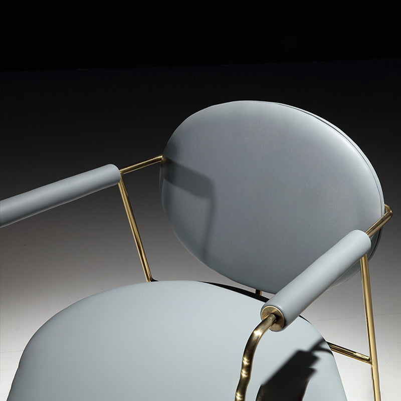 Silla de comedor de cuero con silla de brazo glamorosa con marco de oro para el hogar