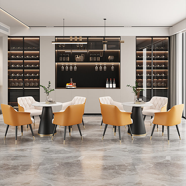 Sillas de comedor de glam metal de metal silla de comedor de cuero falso para uso en el hogar