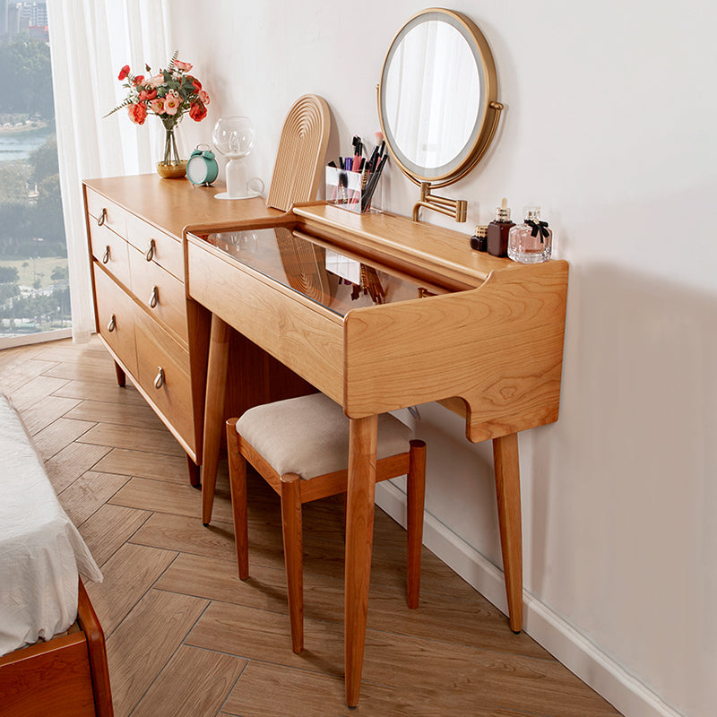 Contador de maquillaje de vidrio 18.11 "Mesas de tocador de madera maciza de ancho con 1 cajones de almacenamiento