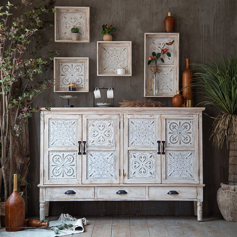 Gabinete de acento industrial con patas y estante de madera gabinete de madera angustiada