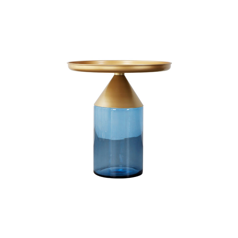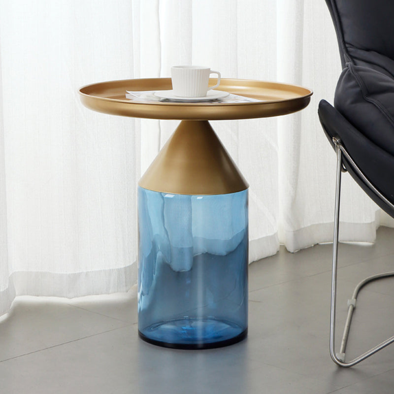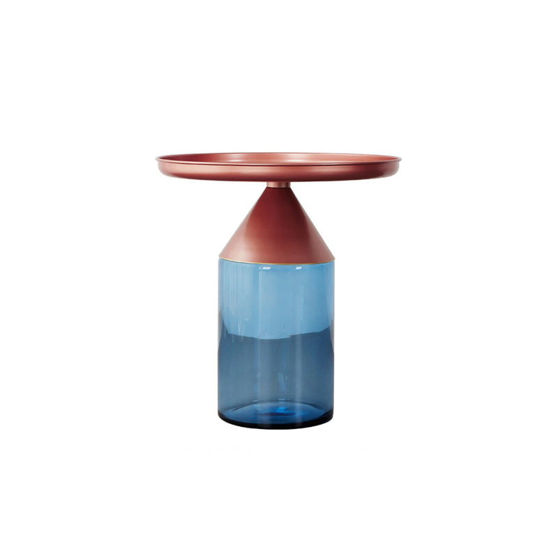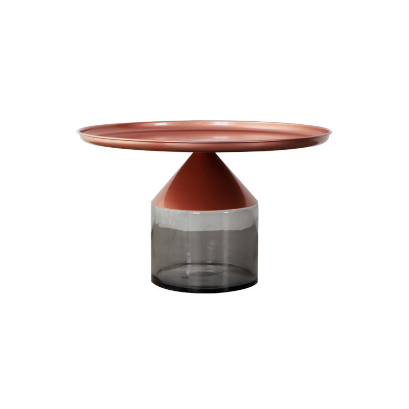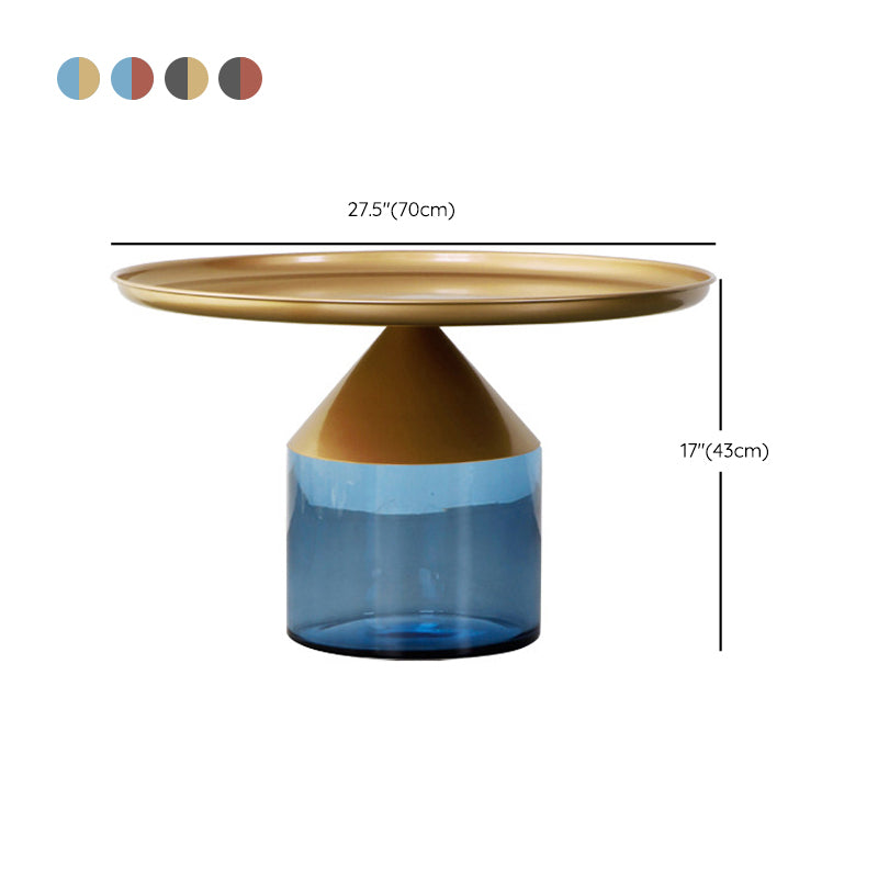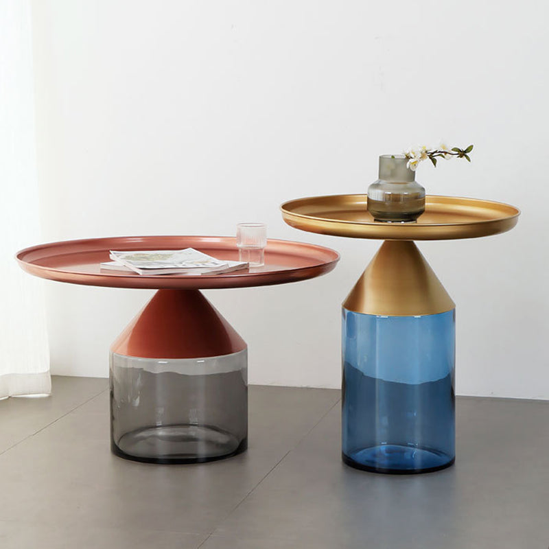 Mesa de centro con tapa de bandeja de metal Mesa de cóctel con pedestal de vidrio Mid-Century