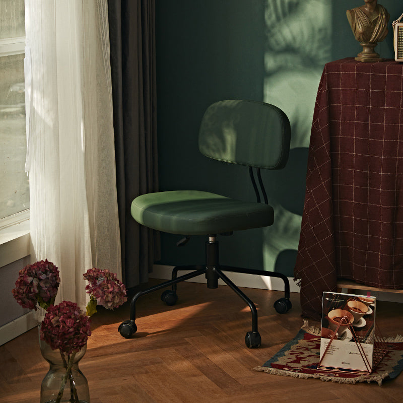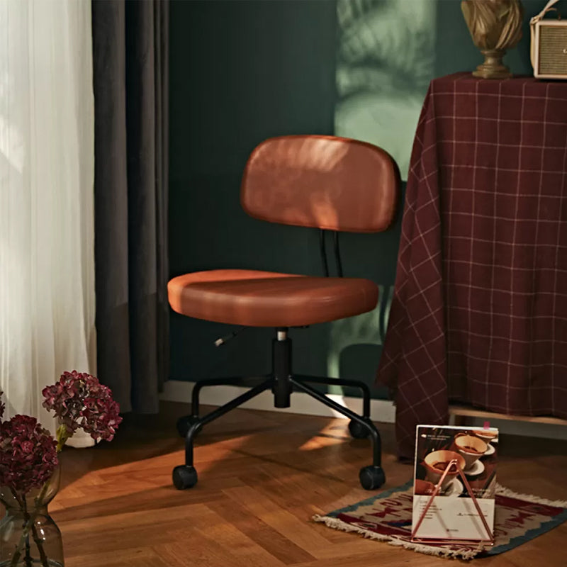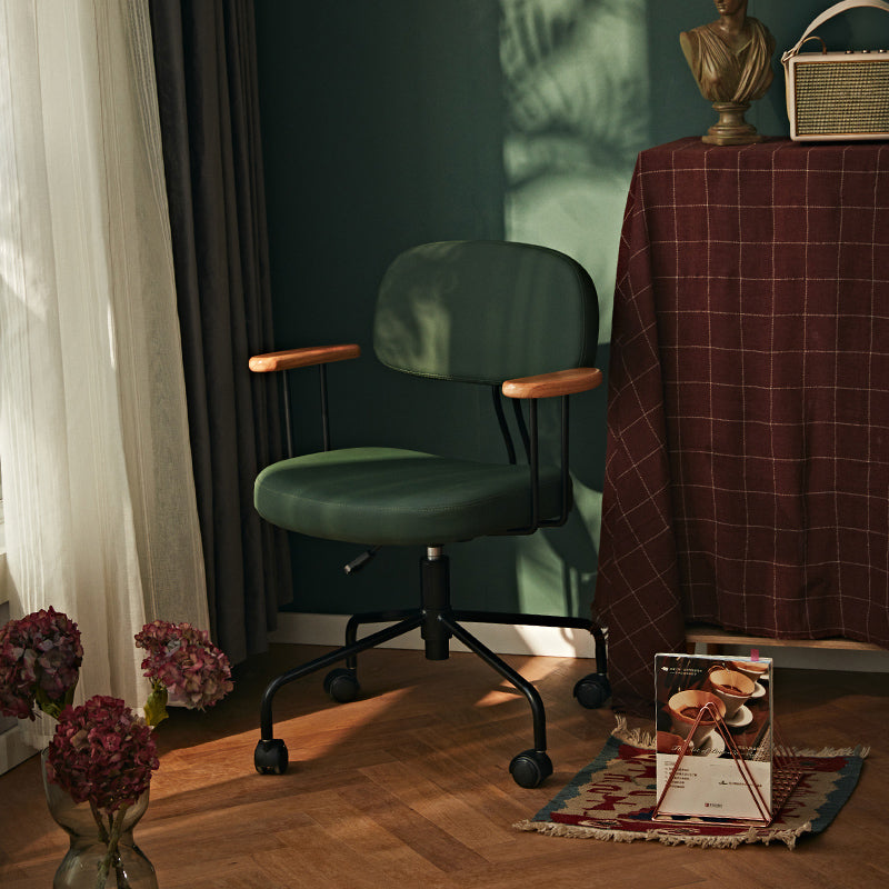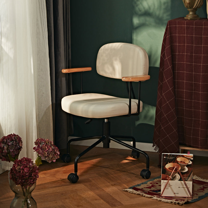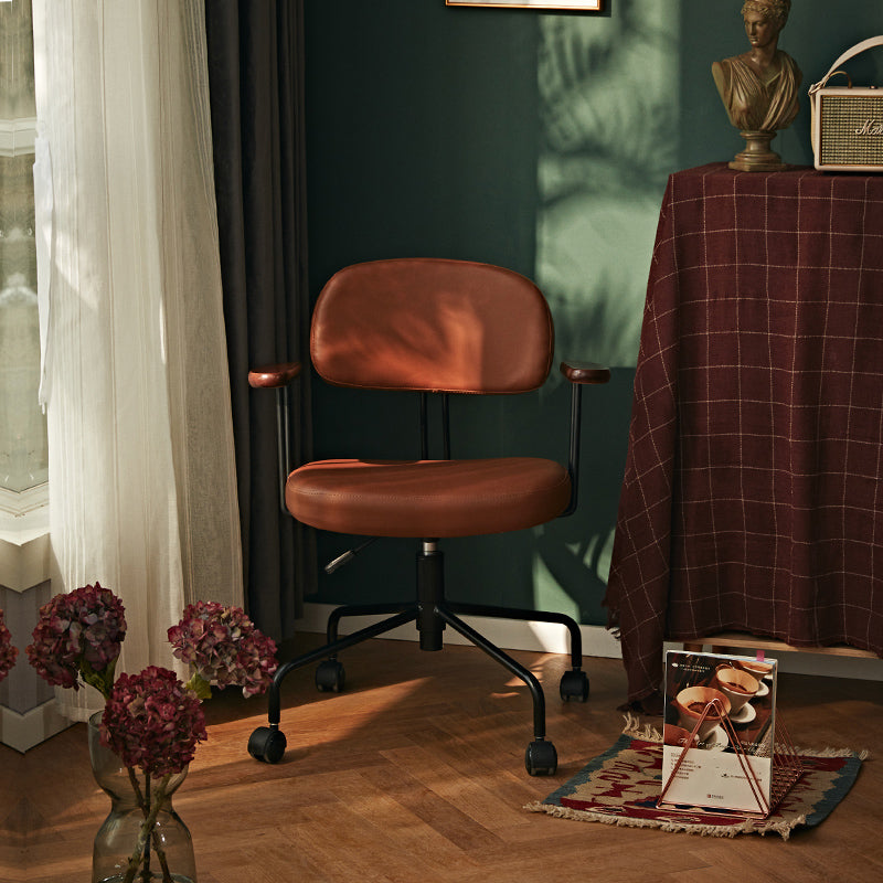 Silla de oficina de armas fijas modernas cuero sin angustia silla de portaobjetos ergonómico con ruedas