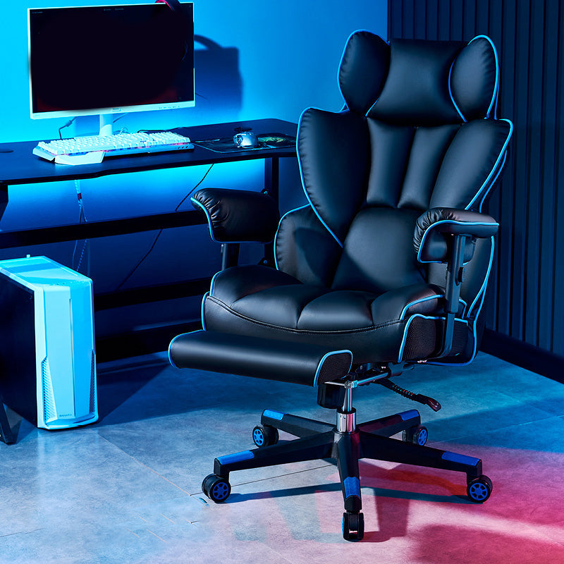 Silla de juego moderna para el hogar de cuero de cuero silla de acuñación con ruedas