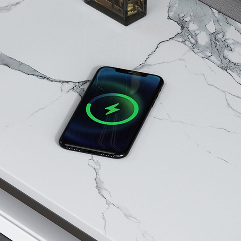 Modern de cuero de cuero 4 patas Nightsand stone Top Night Table con cajón