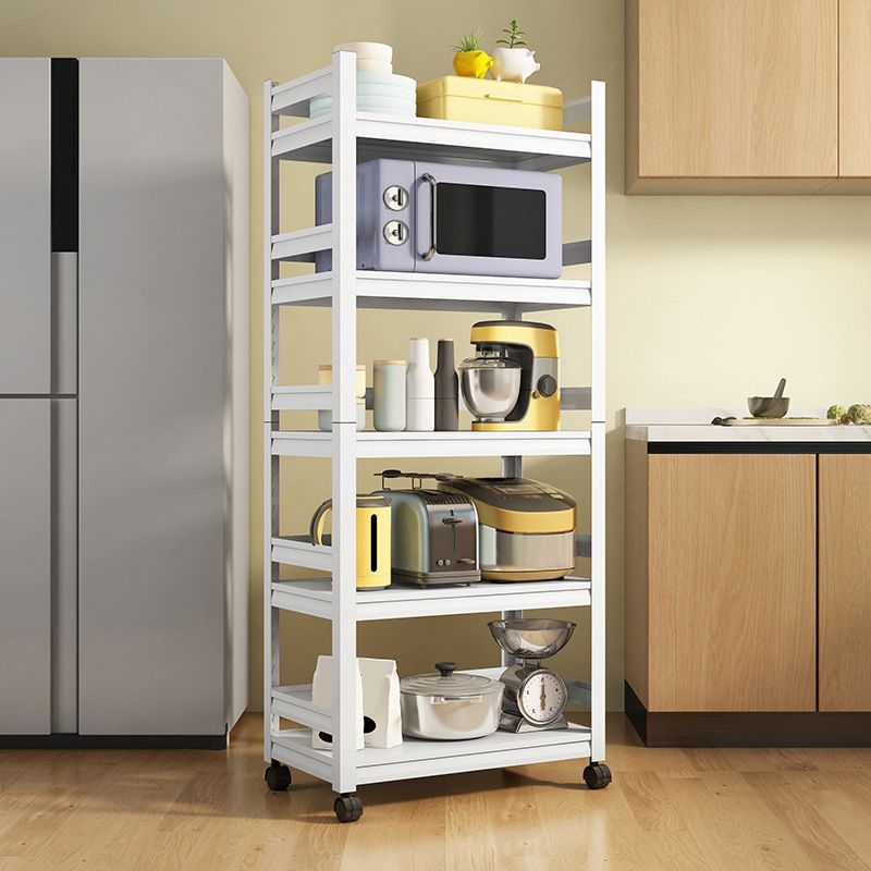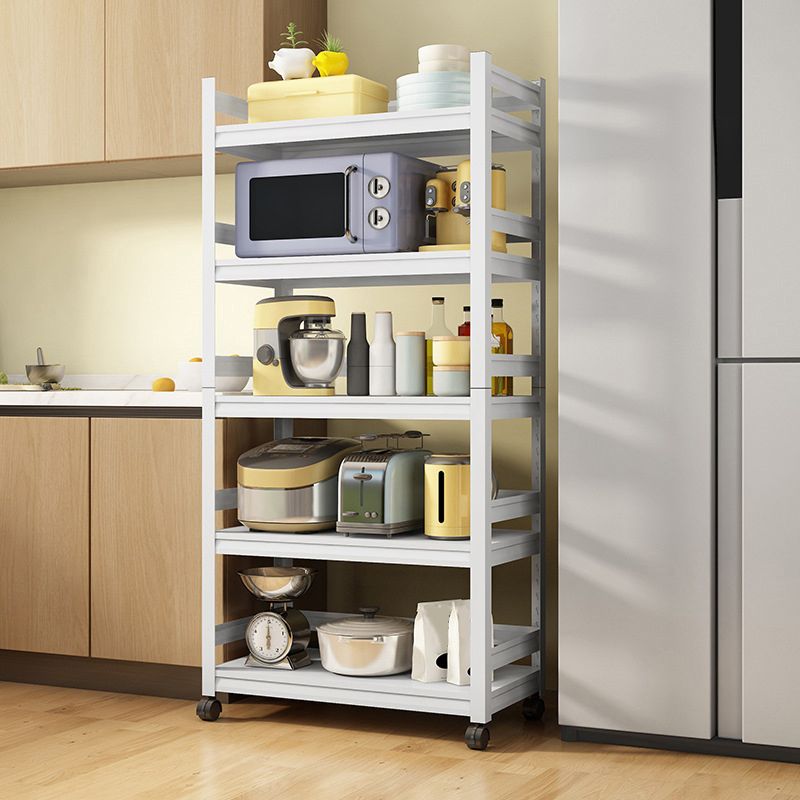 Mesa moderna de la isla de cocina de metal mesa de preparación de almacenamiento abierta en blanco