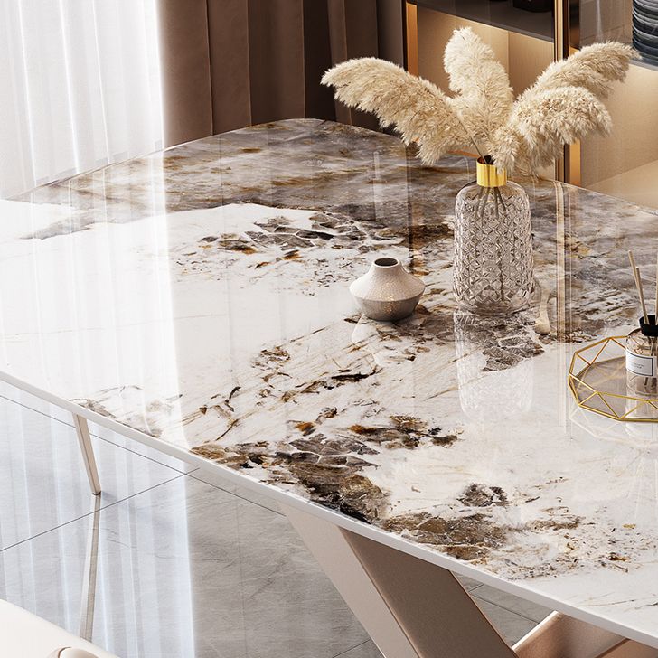 Mesa de comedor rectangular Juego de comedor de piedra 1/5/7 PCS con sillas tapizadas