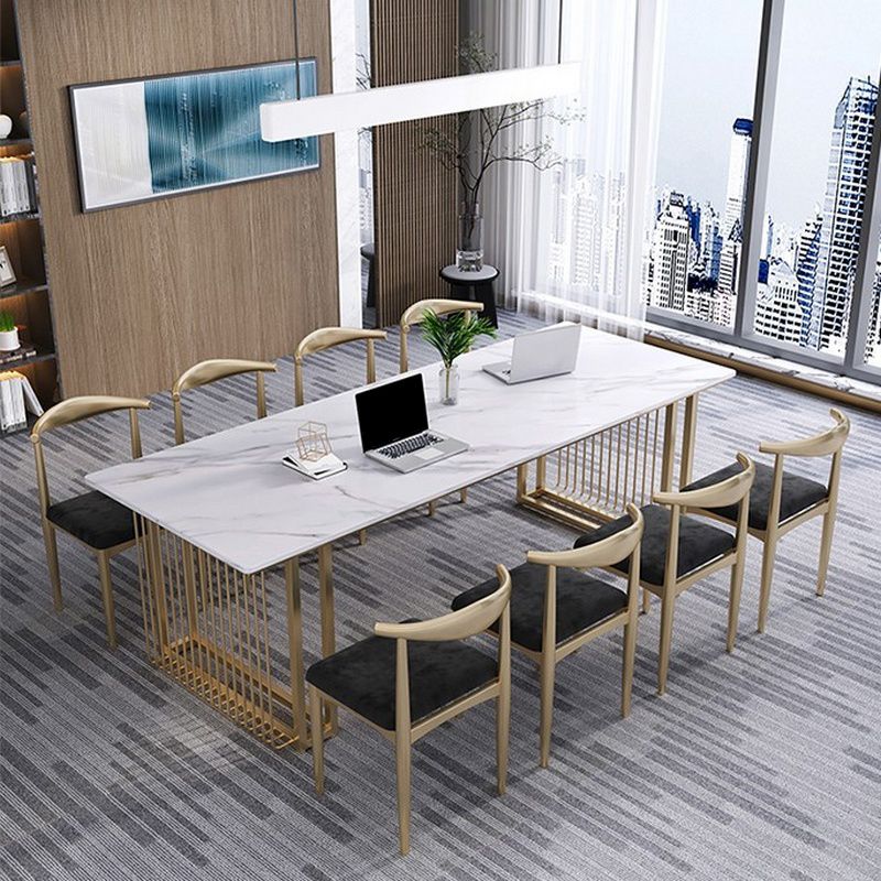Descripción de escritura de piedra de mesa moderna de oficina moderna de forma rectangular en blanco