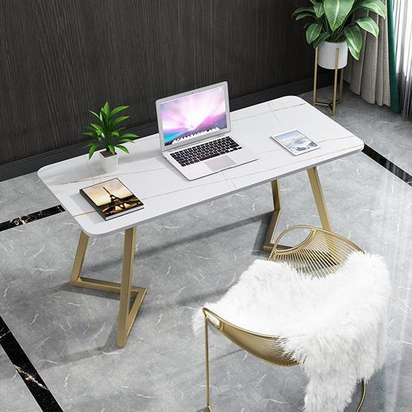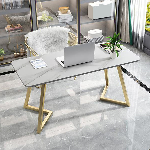 Escritorio de oficina de forma rectangular escritura de escritura blanca/gris para la oficina