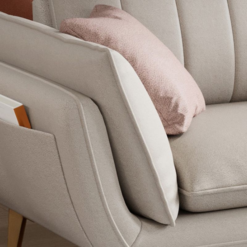 Sofá de cuero de imitación escandinava con almacenamiento, sofá de brazo acampanado con almohadas