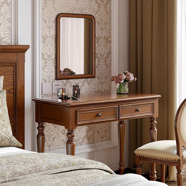 Mesa de escritorio de tocador de maquillaje de trastornos marrón de madera maciza con taburetes