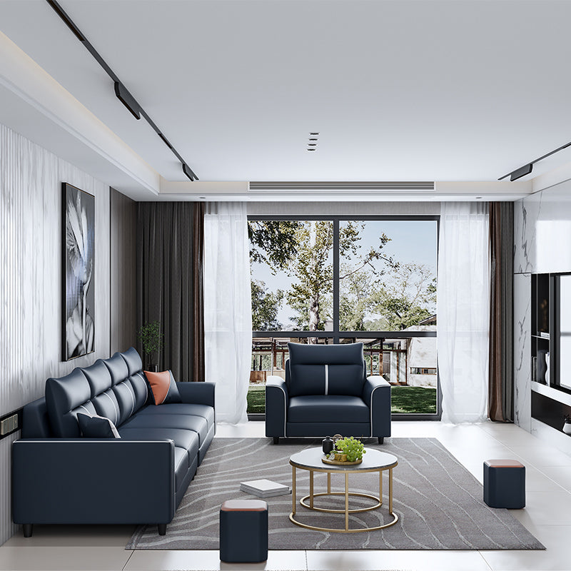 Cojines azules removibles de brazo cuadrado sofá resistente a las manchas contemporáneas