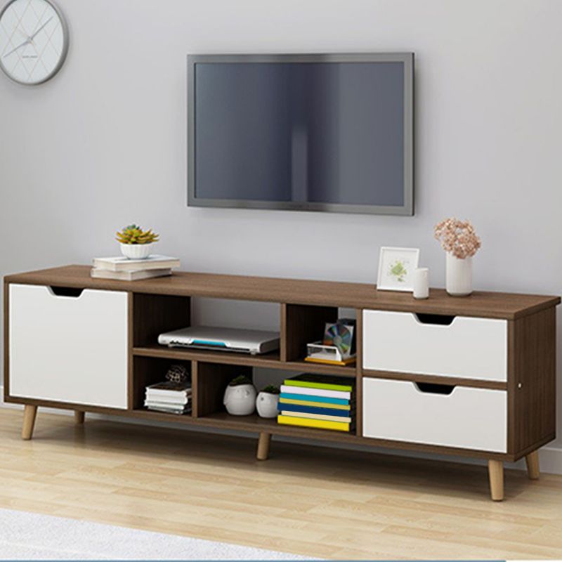Soporte de televisión nórdico de 12 "D Consola de TV de madera de almacenamiento abierto con cajones y puerta