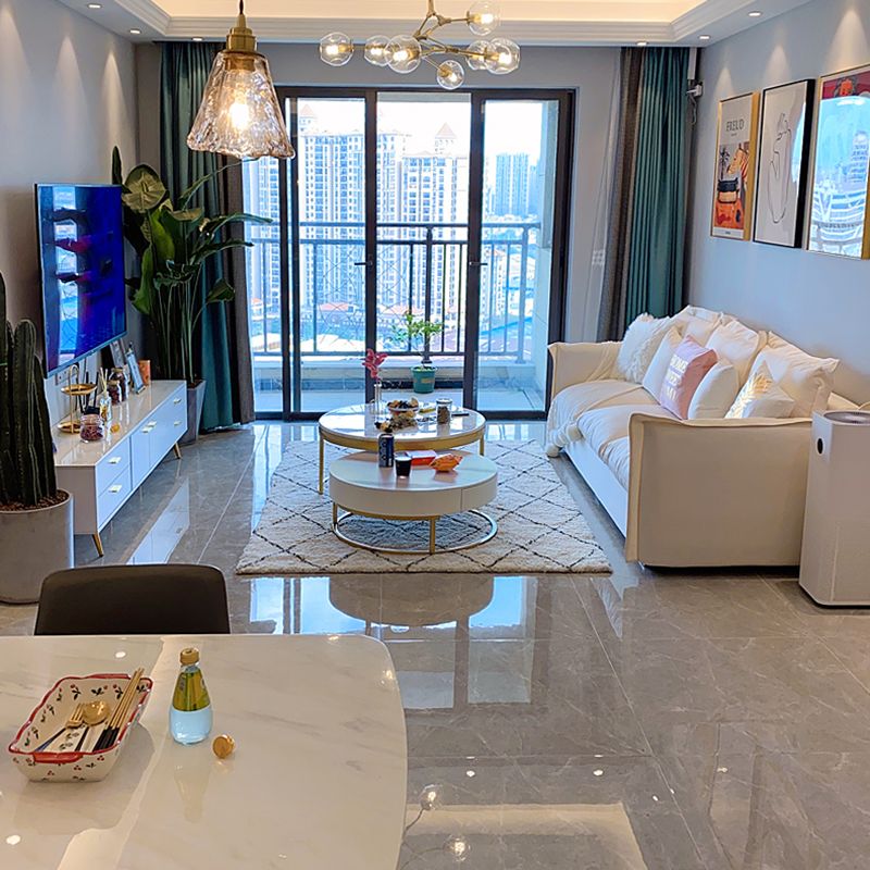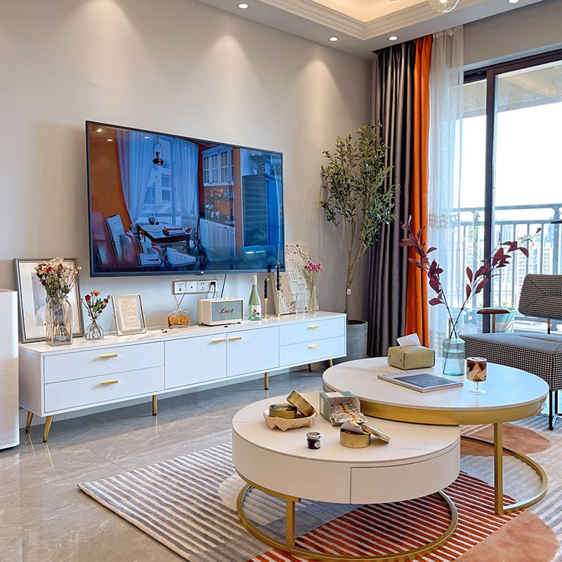 17.72 "H TV Stand Glam Console White TV White TV con 4 cajones para sala de estar