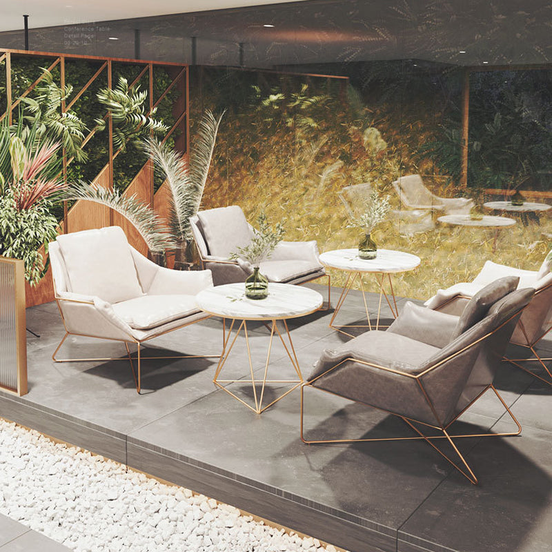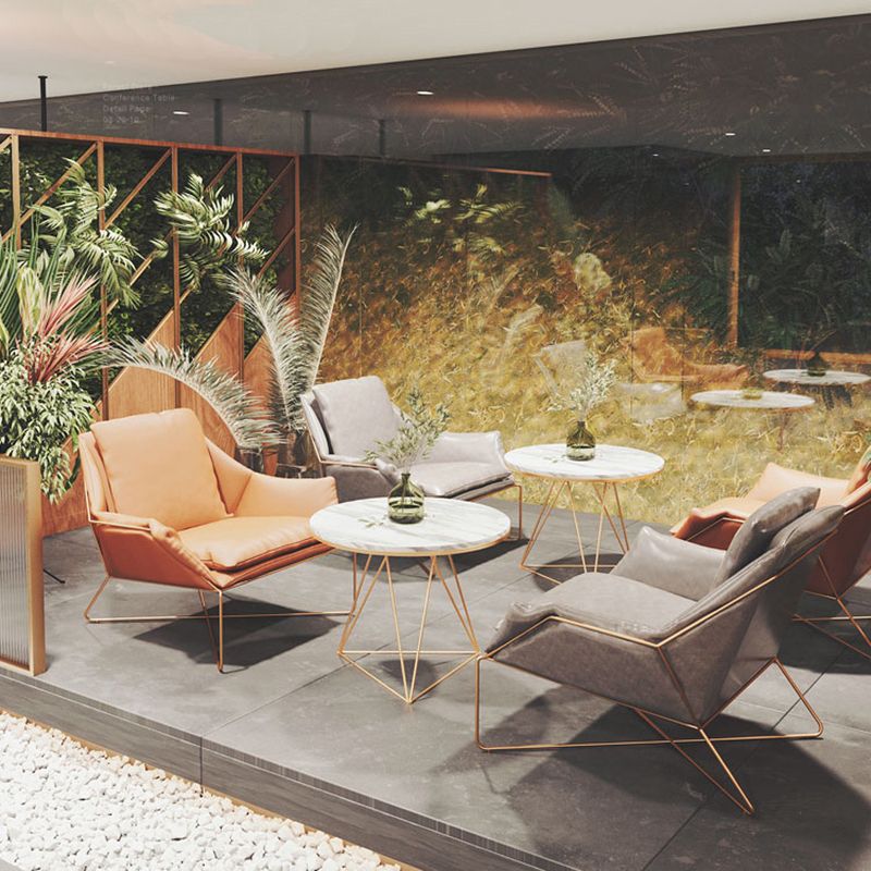 27.56 "de amplio estilo escandinavo acento sillón cruzado silla de brazo de metal cruzado