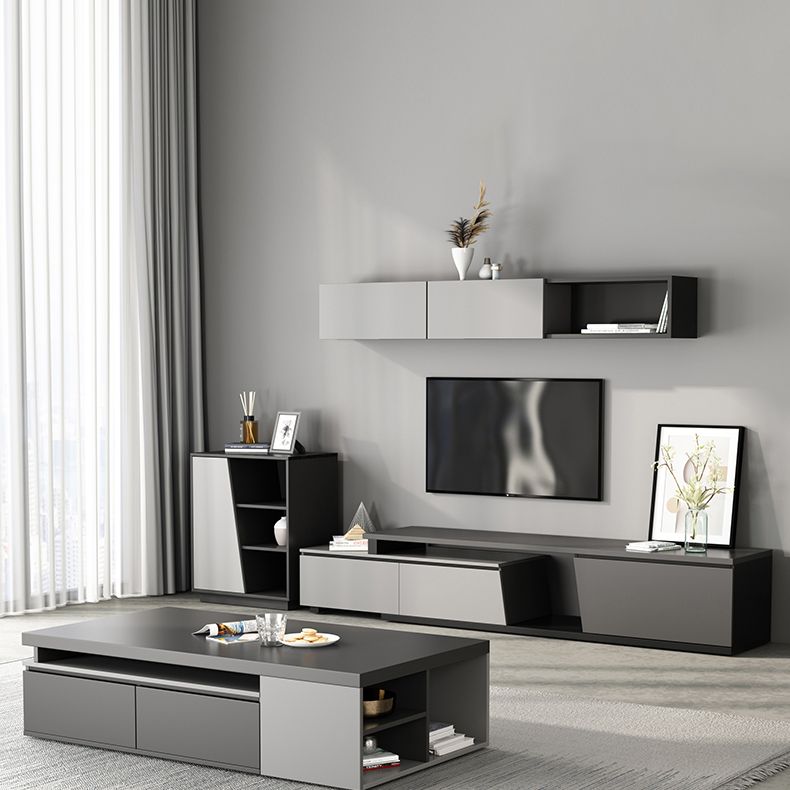 Soporte de televisión de esquina contemporáneo de 70 " / 90", gabinete de televisión de madera diseñado en gris