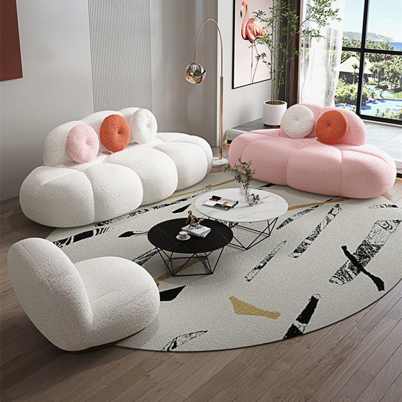 Sofá de lana de sofá curva sin brazo contemporáneo con espalda apretada para sala de estar