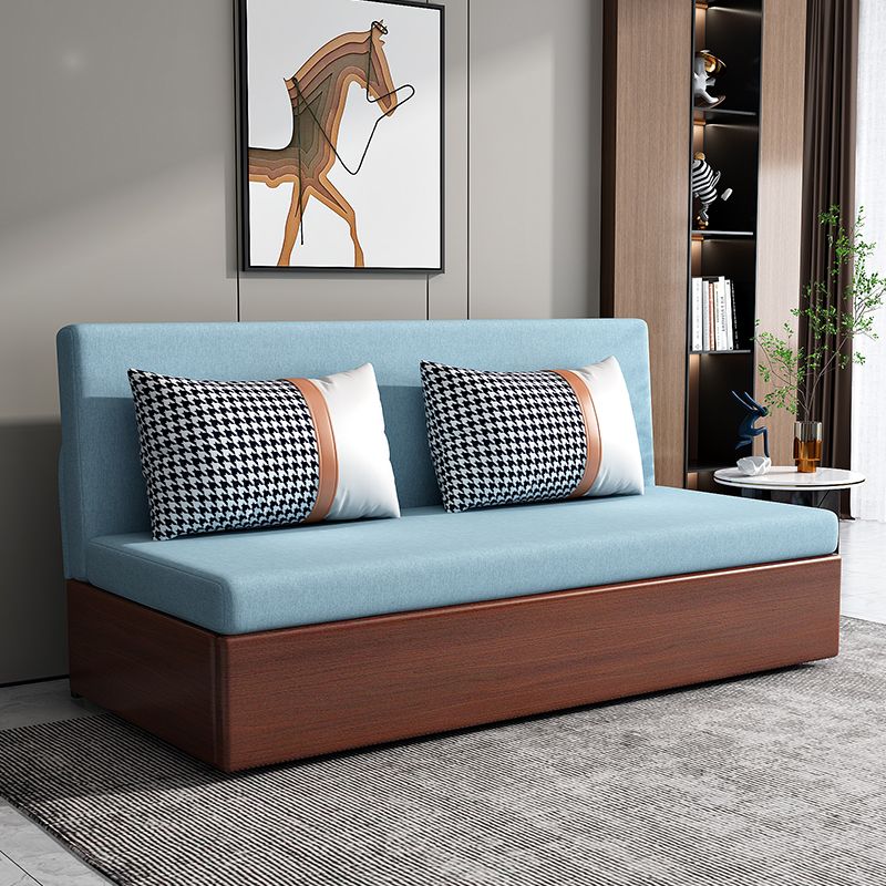 Cama contemporánea de algodón de algodón de algodón atrasado sin brazo en azul