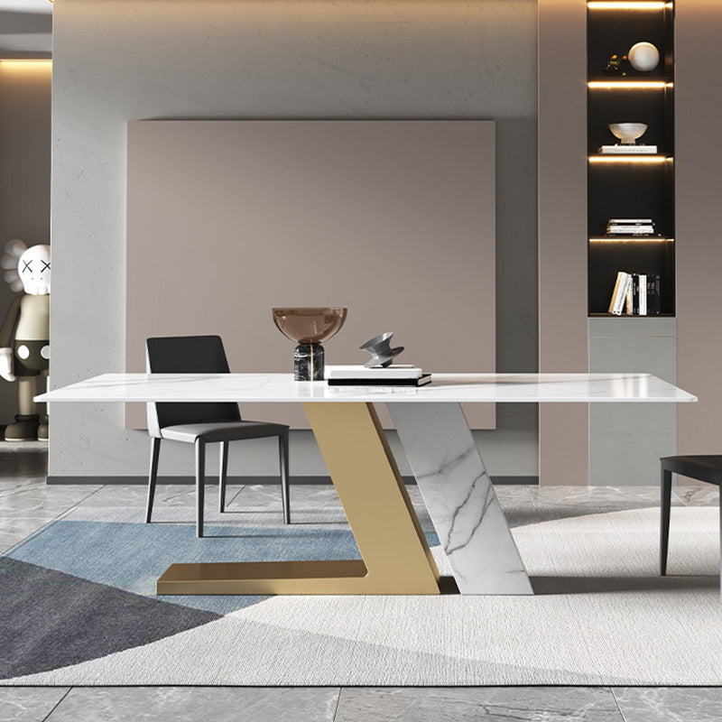 Mesa de rectángulo de base de metal dorado Mesa de comedor de piedra sinterizada en blanco y negro moderno