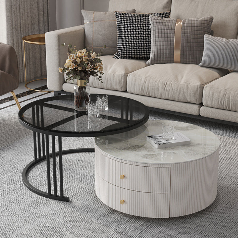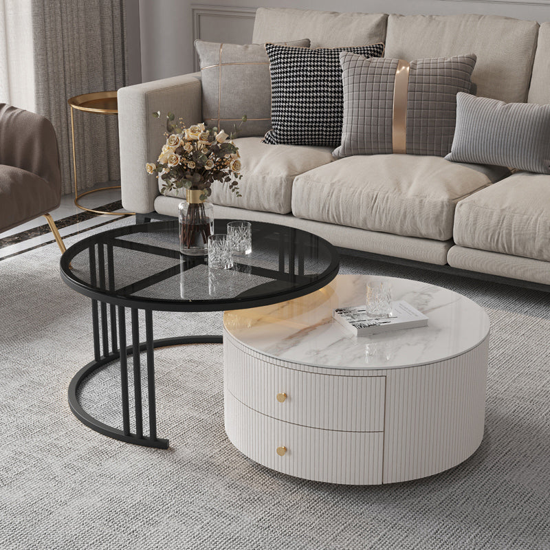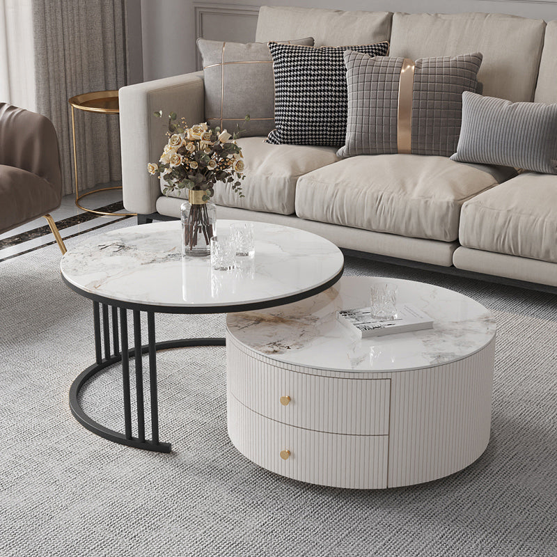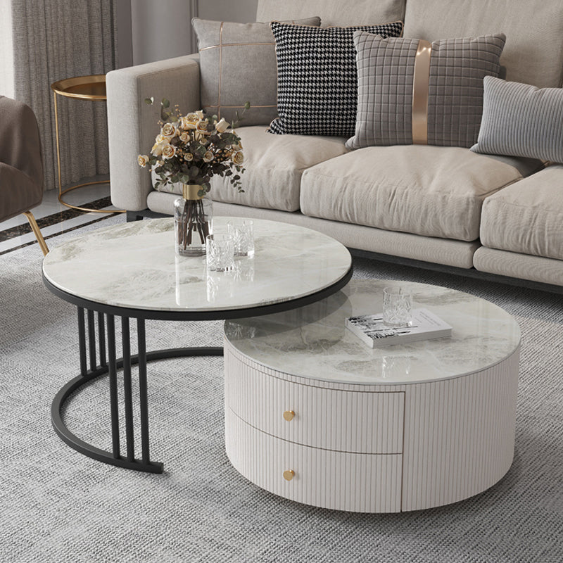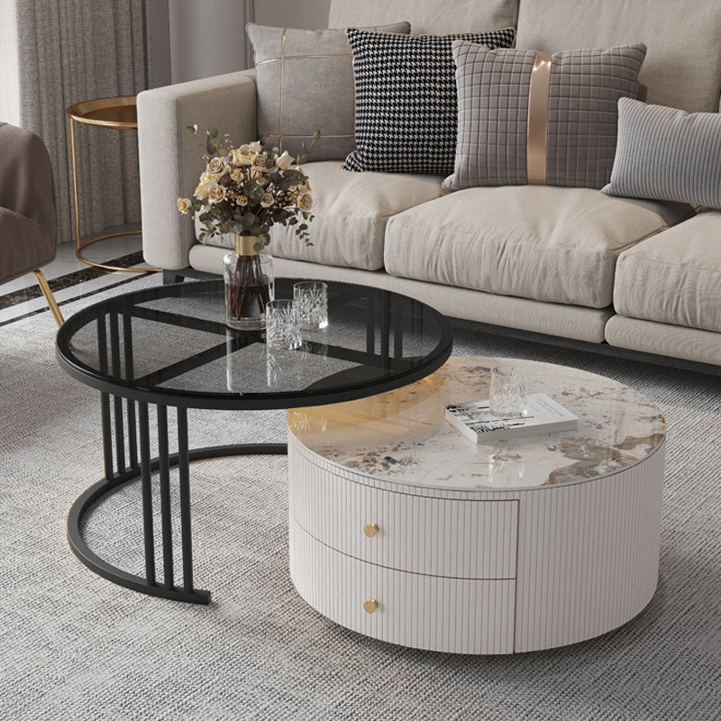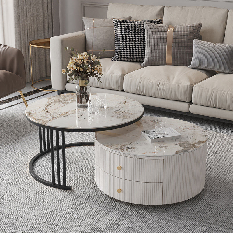 Mesa de centro con tapa de piedra y estructura de pizarra, juego de mesa de centro Glam con 2 cajones