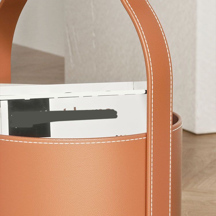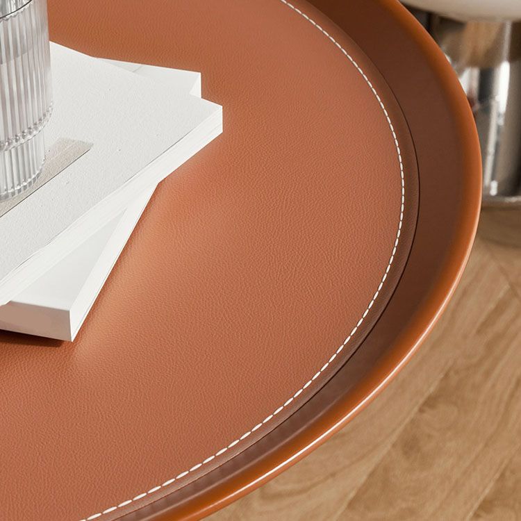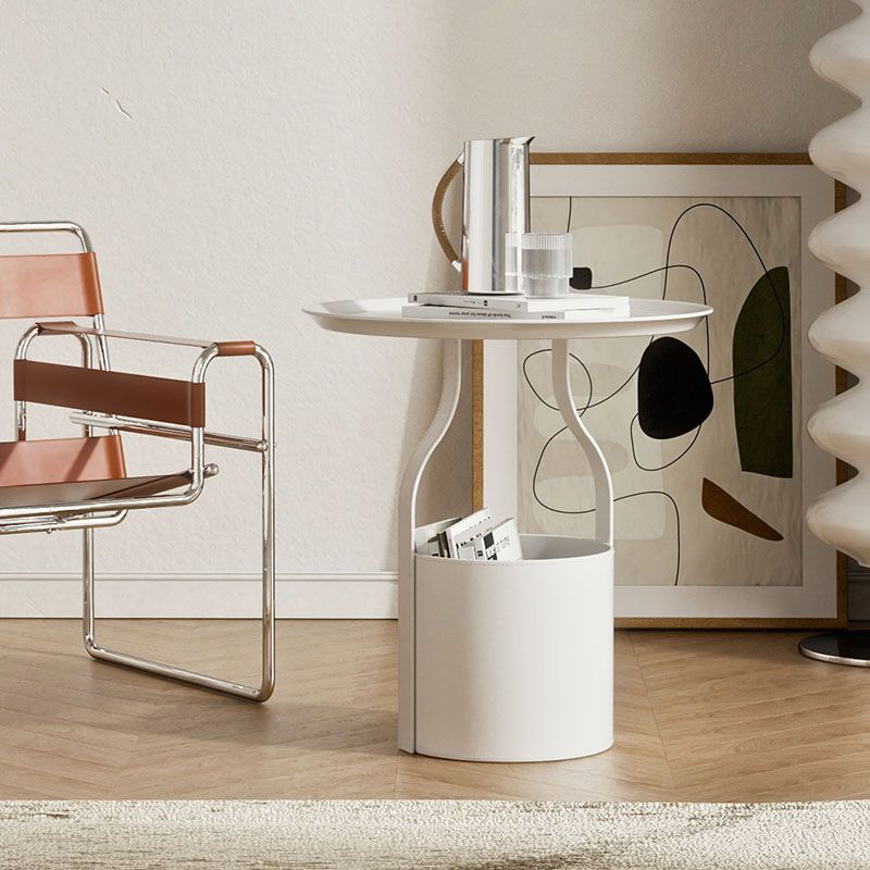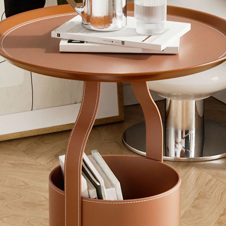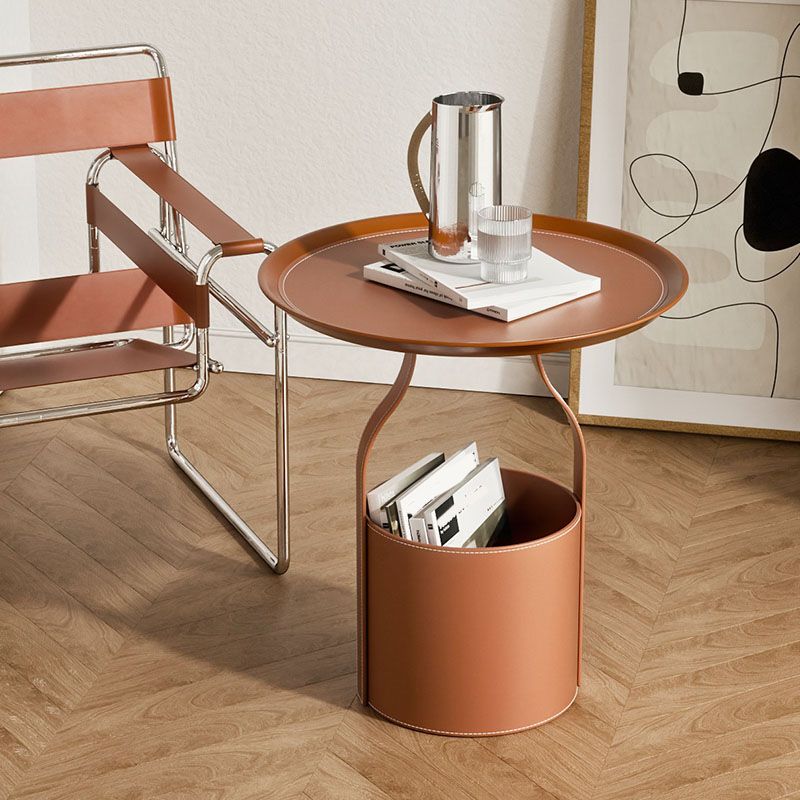 Medra redonda de metal Mesa lateral superior de 20.9 "Mesa de pedestal de cuero de altura con almacenamiento