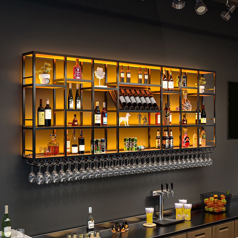 Pastelera de vino de metal Rack de soporte de vino montado en la pared de estilo moderno con estante