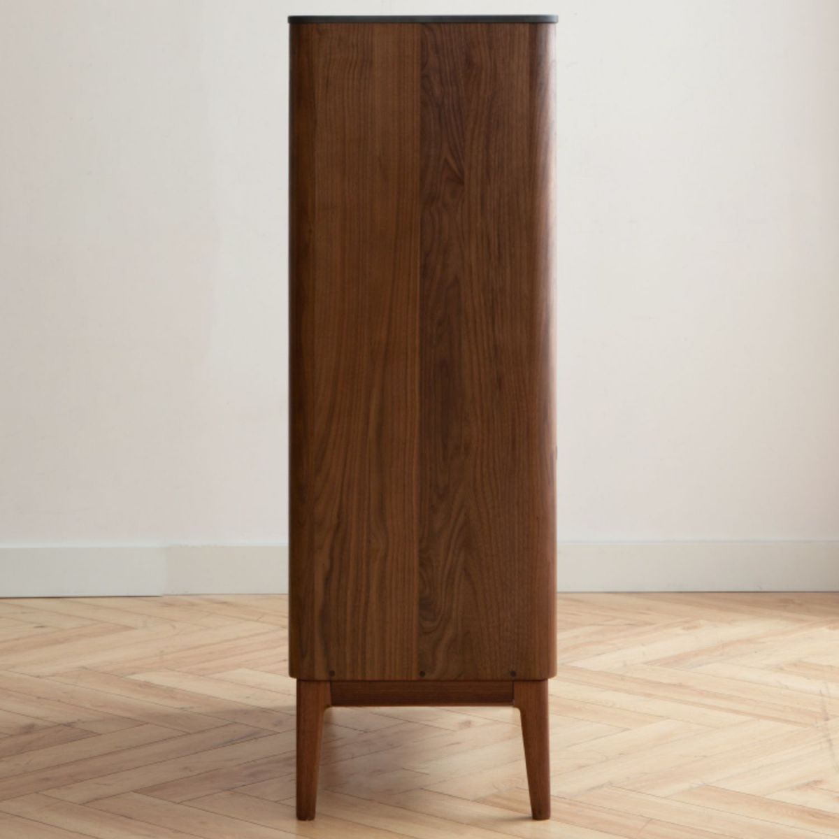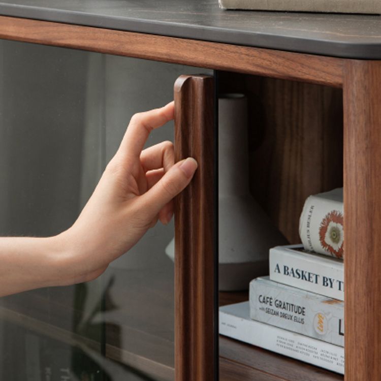 Gabinete de acento de sala de estar moderna de mediados de siglo con puertas