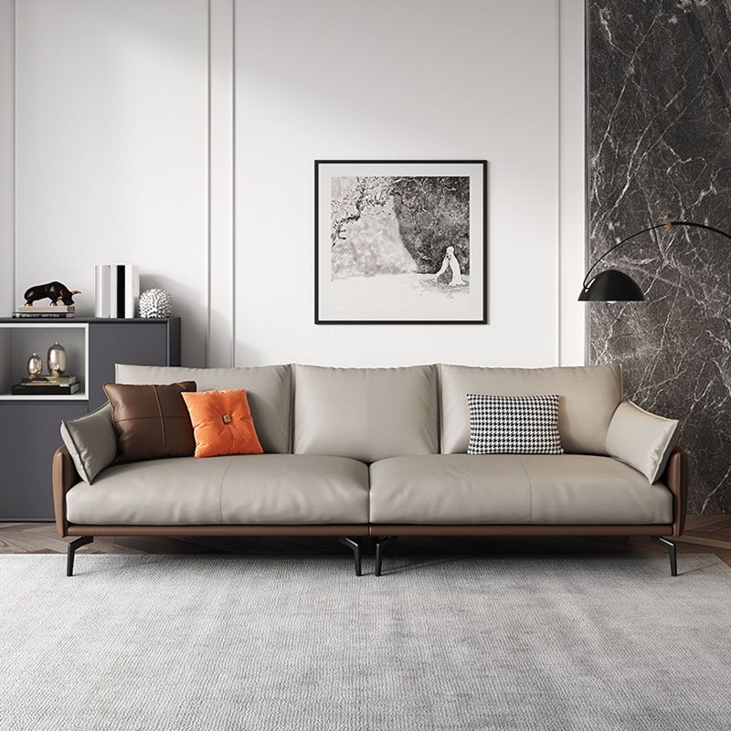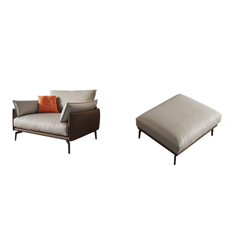 Sofá de cuero moderno de brazo de almohada en marrón con patas de metal