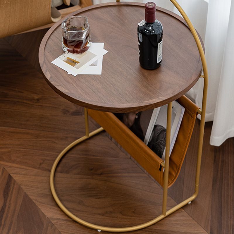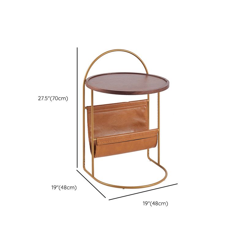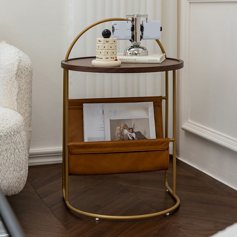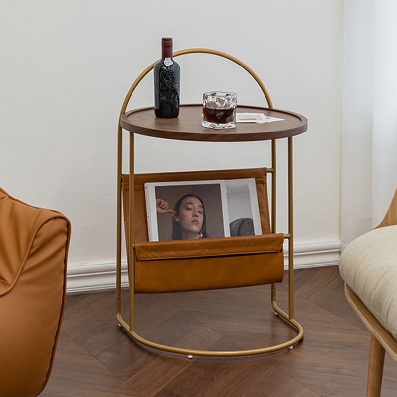 Mesa lateral de madera sólida con mesa de esquina superior de bandeja redonda de almacenamiento