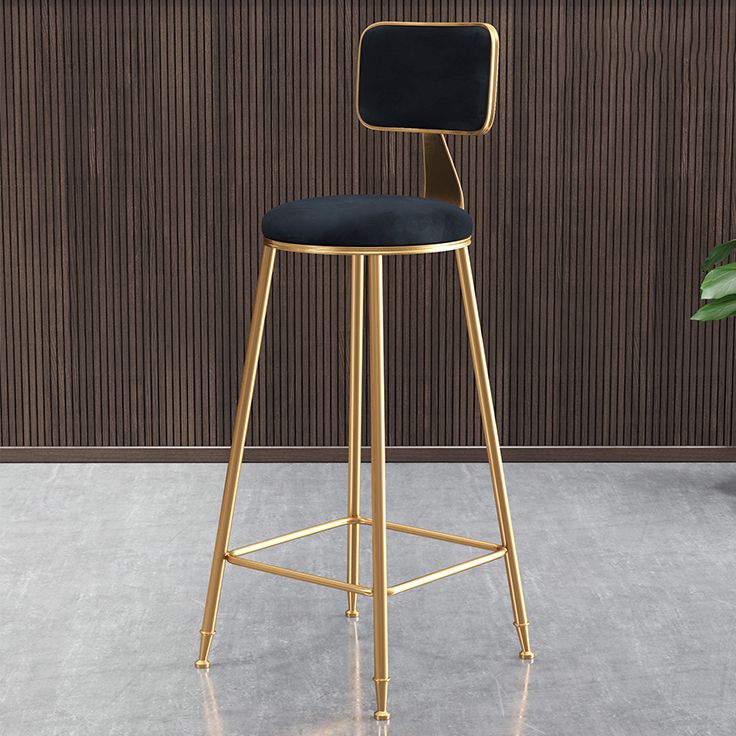 Taburete de bar y mostrador de terciopelo Glam, taburete redondo con 4 patas doradas