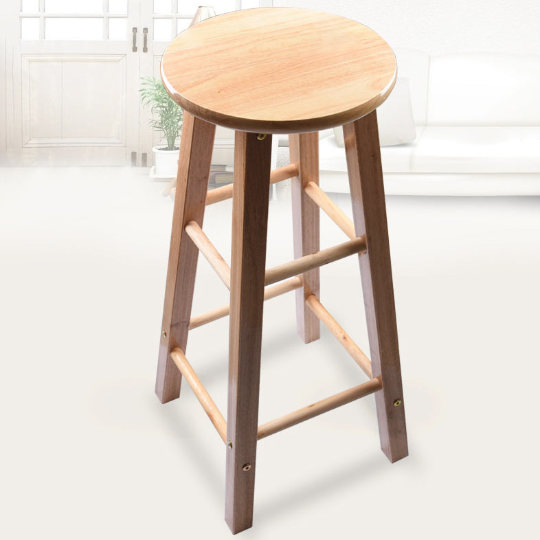 Taburete redondo moderno sin respaldo, taburete de bar de madera maciza de roble en color natural