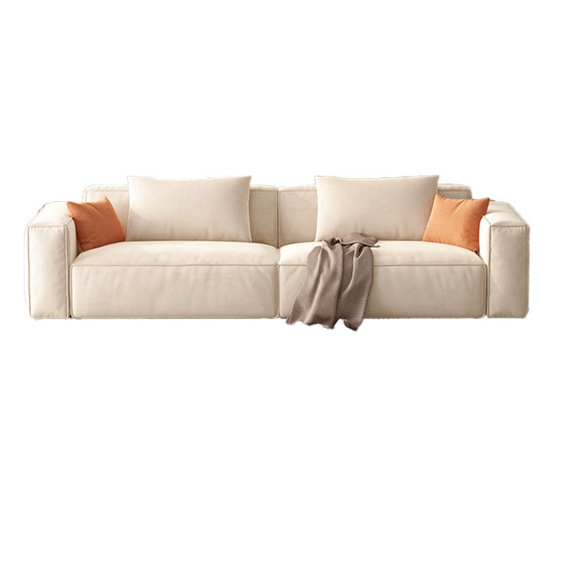 Sofá moderno de brazo cuadrado de terciopelo con almohadas en blanco 37.40 "W