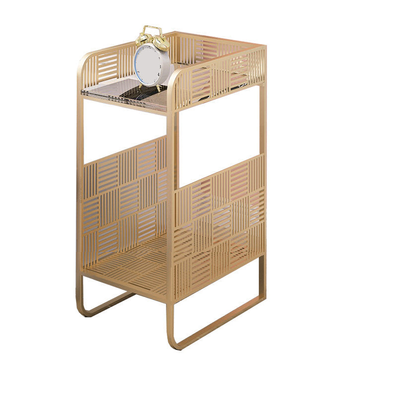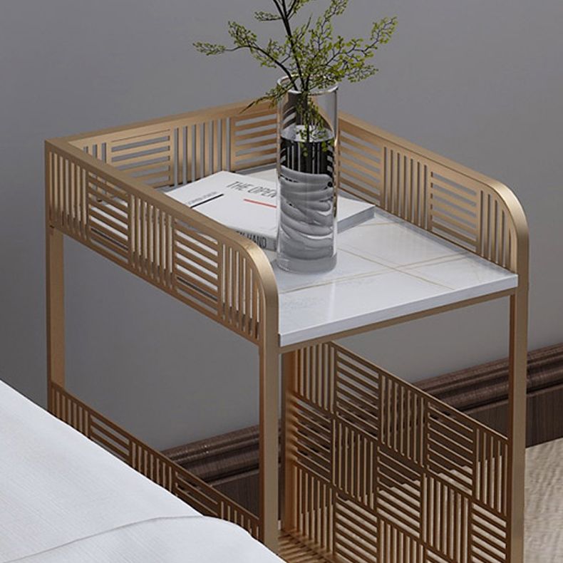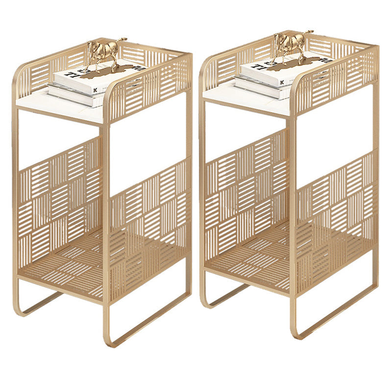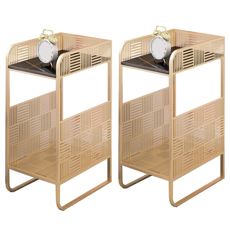 19,69 "Tableau de table de chevet en pierre à 2 étagères Table de nuit ouverte