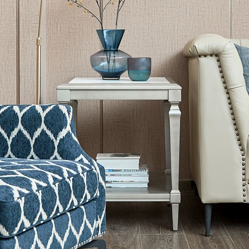 25,6 "" Table à bois carré de table latérale supérieure Sliver 4 jambes Table de bout avec étagère