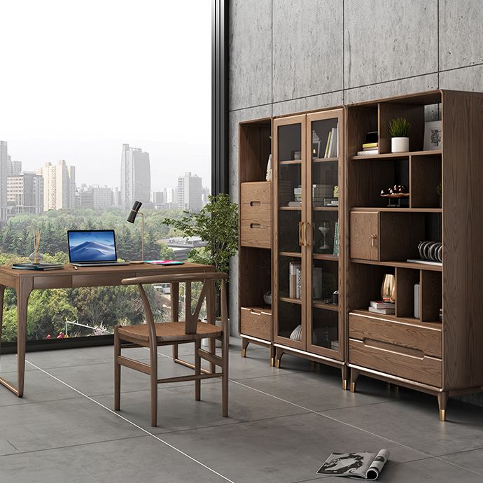 Image de rangement en bois massif de 74 "Tireurs de rangement massif inclus coffre avec étagères