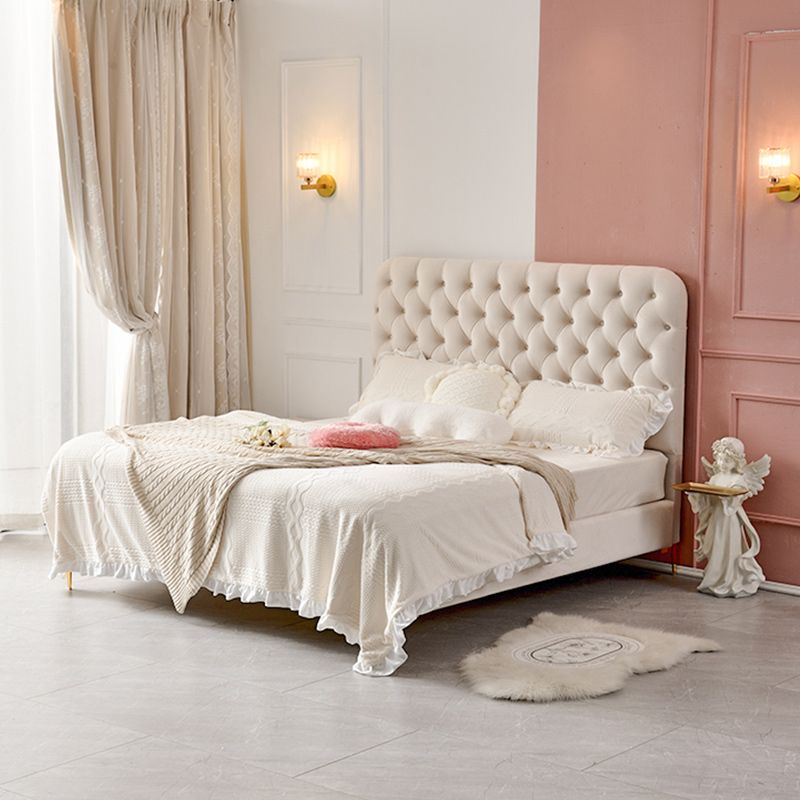 Lit plate-forme rembourré en cuir authentique contemporain Cadre de lit blanc
