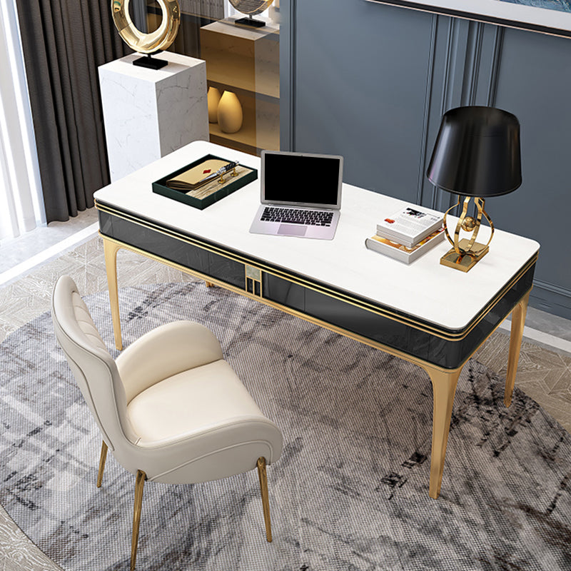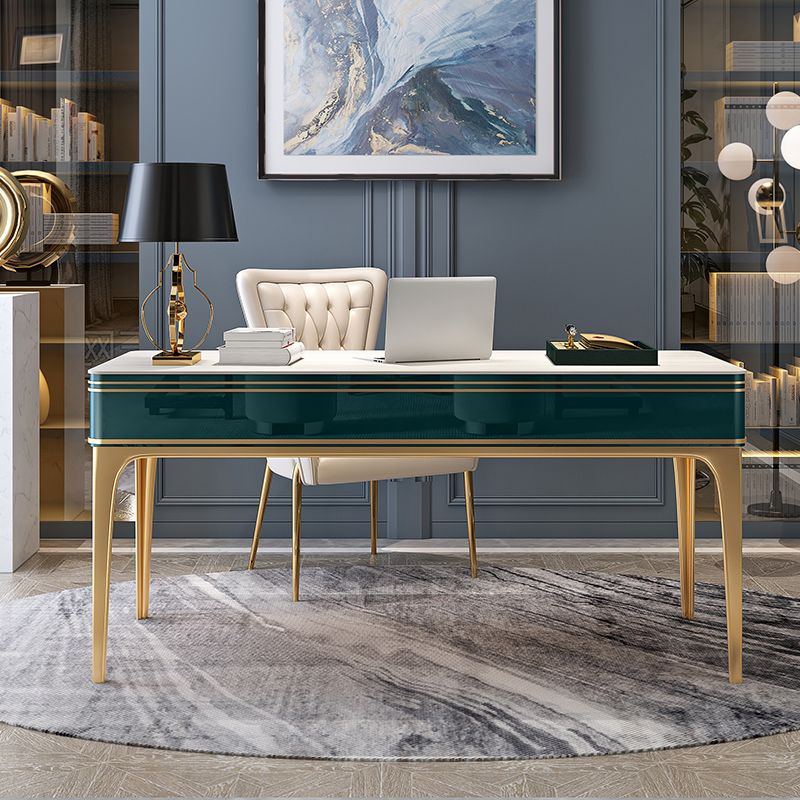 Bureau de bureau en bois contemporain Bureau de tâche de forme rectangulaire avec 4 jambes en vert et or