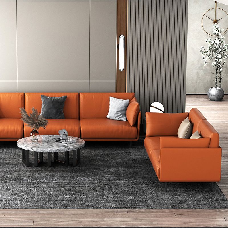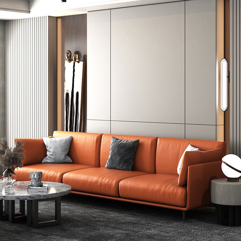 Canapé-oreiller orange en cuir faux en cuir avec jambes en métal