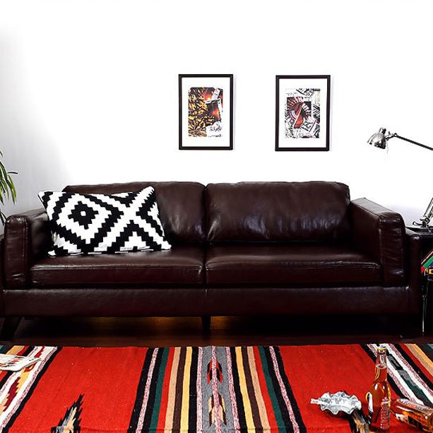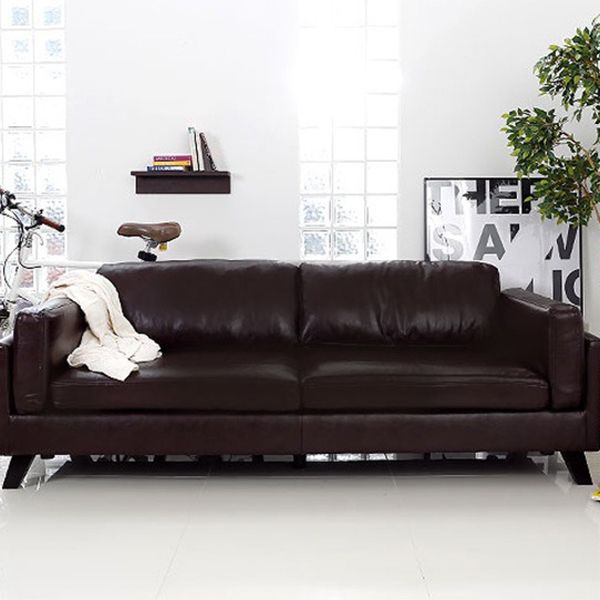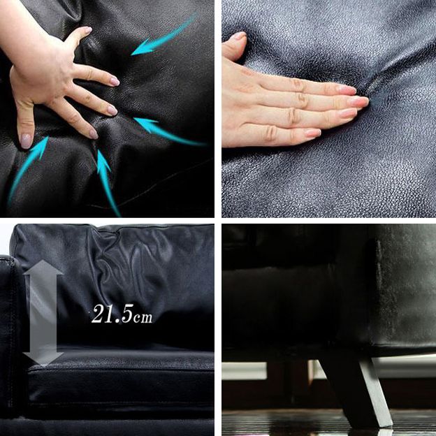 Canapé en cuir faux en cuir carré avec coussins pour le salon
