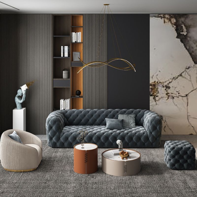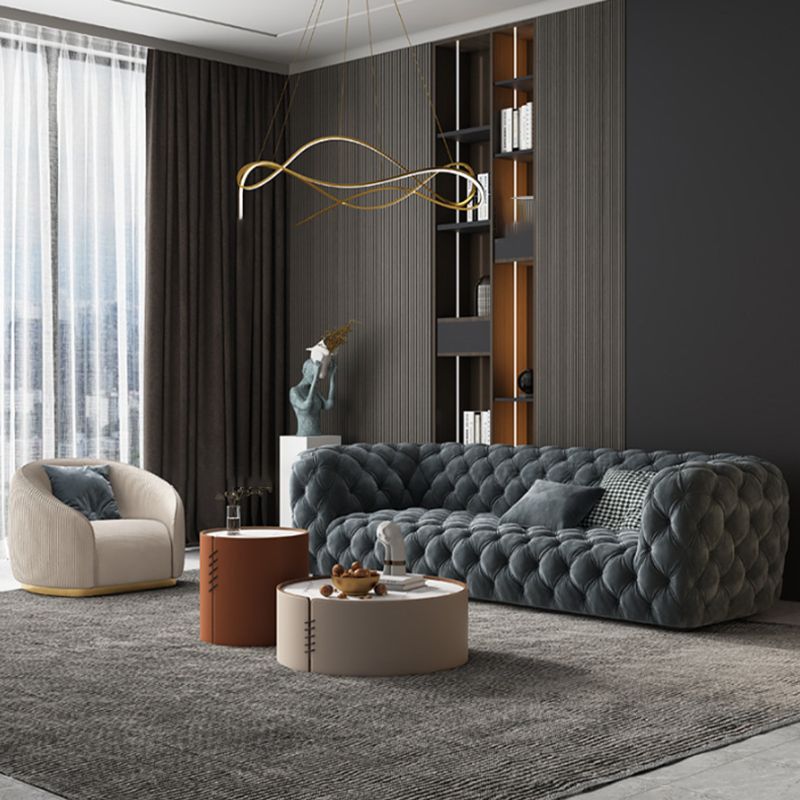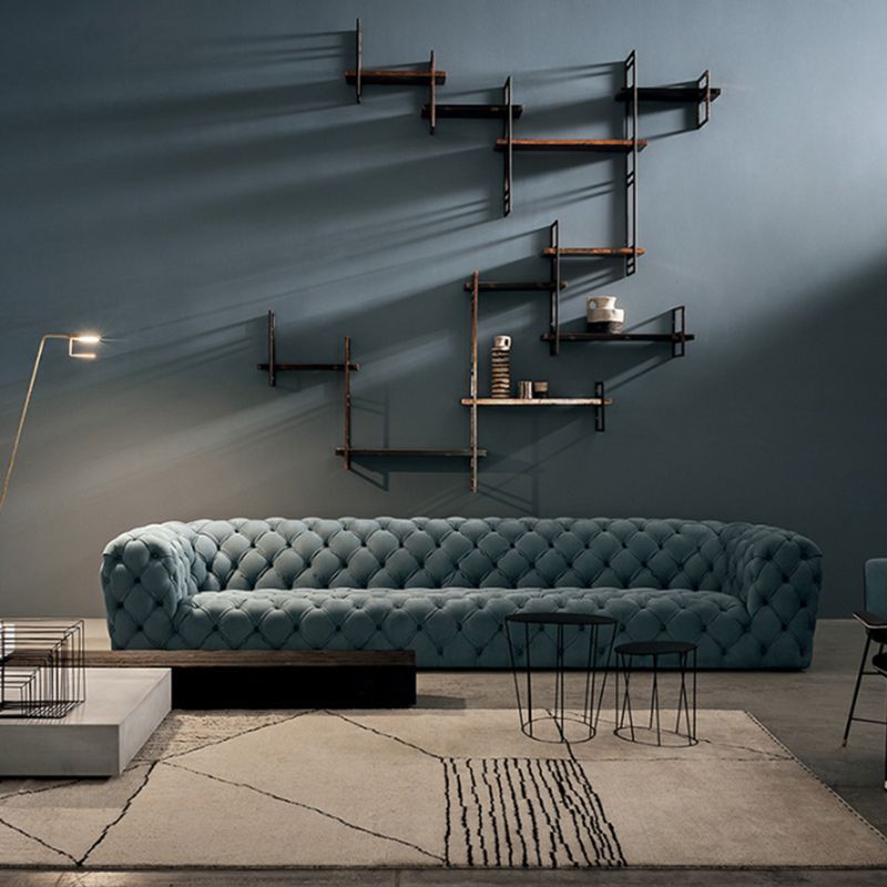 Sof de bras de smoking en cuir authentique 26,8 "H Setrée touflée en bleu
