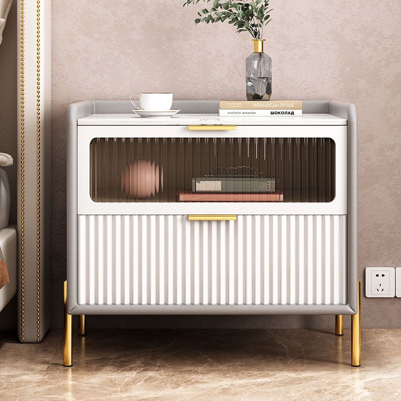 Glam Marble Accent Table Table Tableau 2 Tiroirs Armoire de chevet