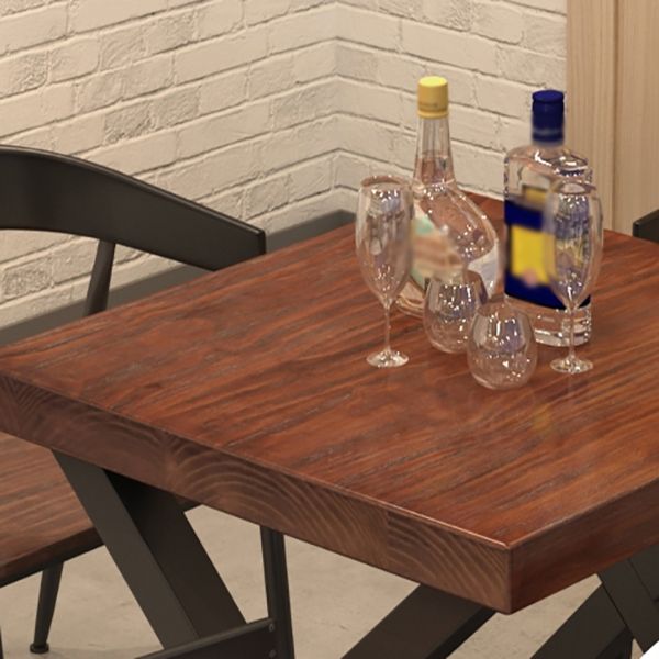 Table de bois en pin industriel pour la table à manger carrée du restaurant avec base de chevalets