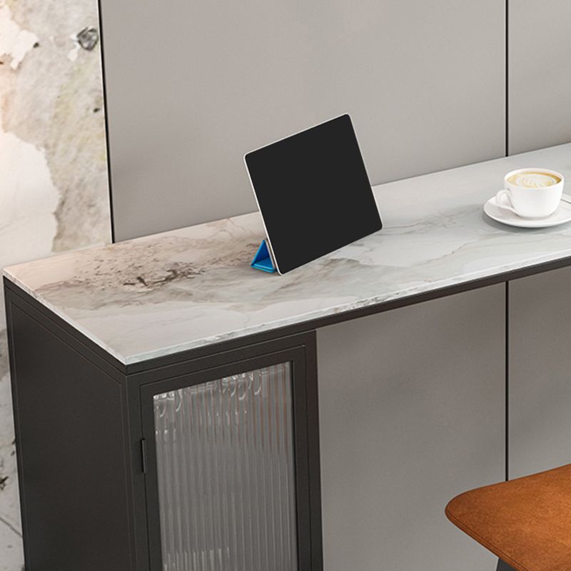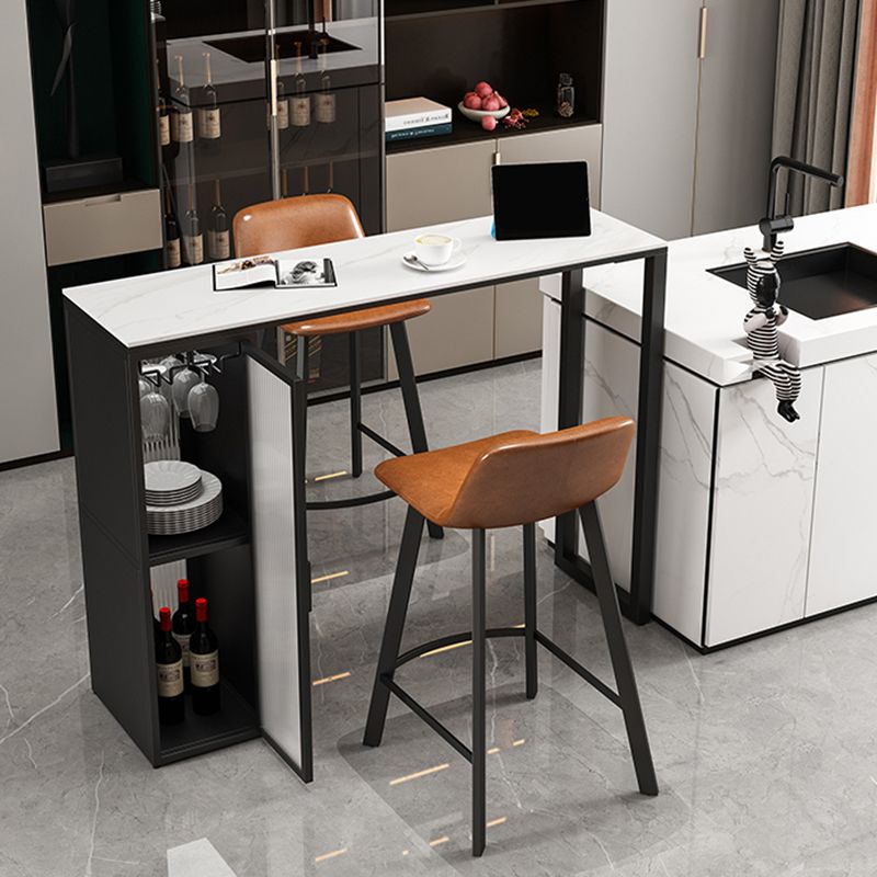 Table à manger moderne en pierre fritrée rectangulaire avec rangement