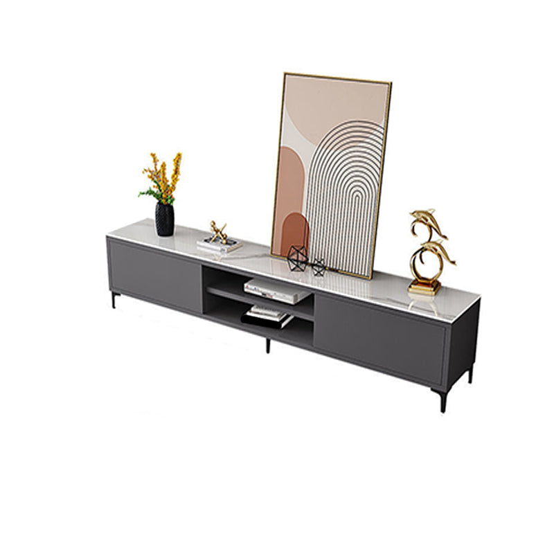 Console de télévision de rangement ouvert et noir en ardoise avec 2 portes