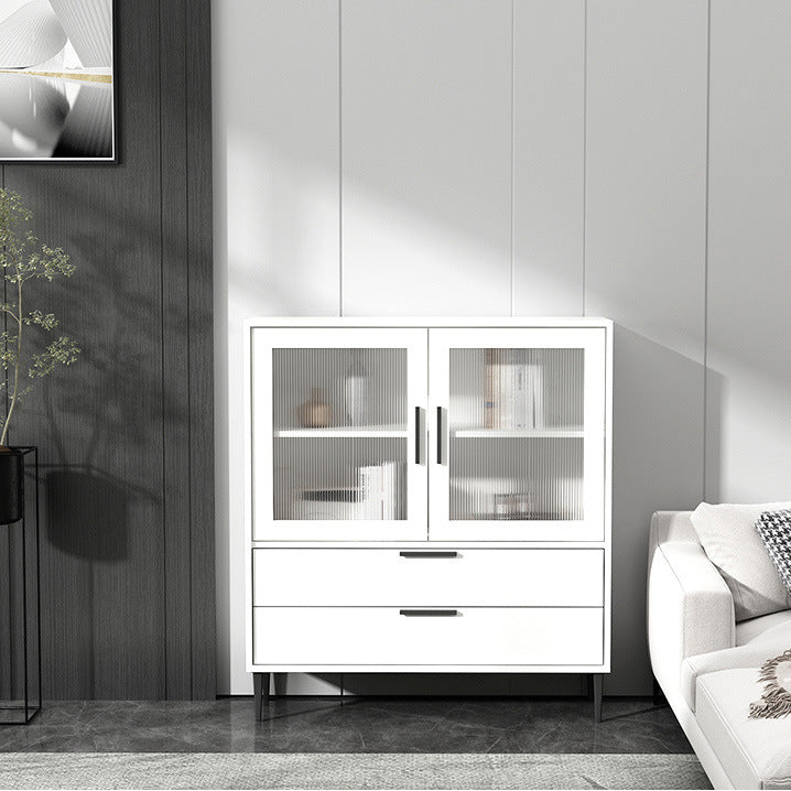 Armoire à accent en bois avec porte en verre et 4 pattes noires en acier