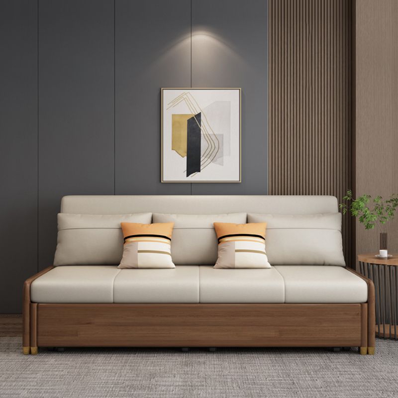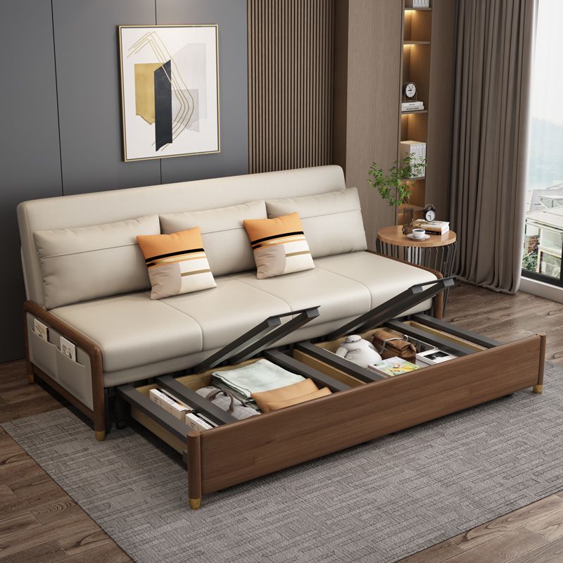 Canapé-lit beige et marron avec oreillers sièges convertibles avec rangement