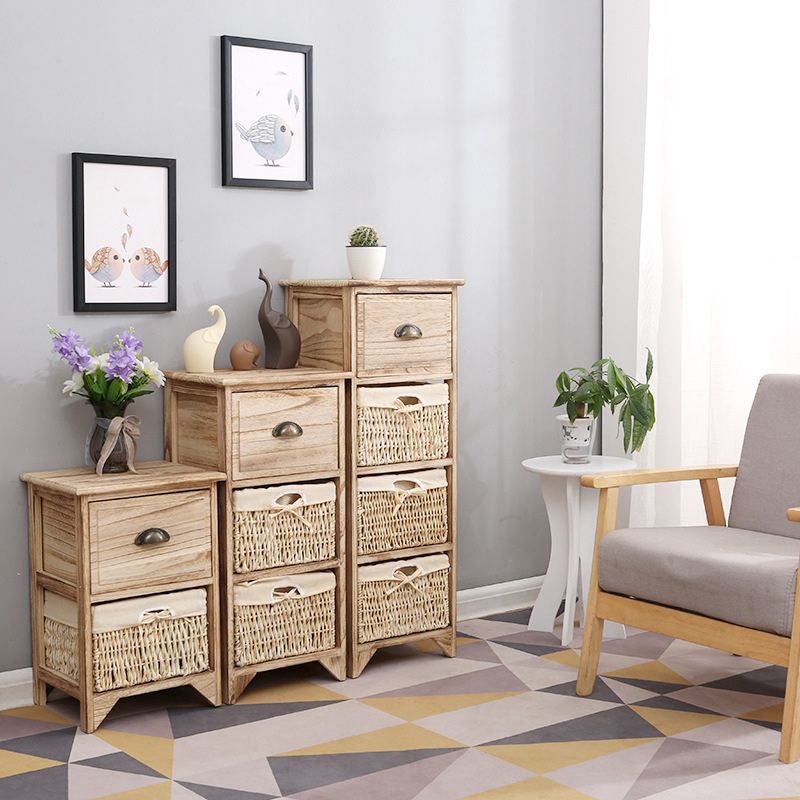 Coffre d'accent contemporain avec des tiroirs et des paniers en naturel