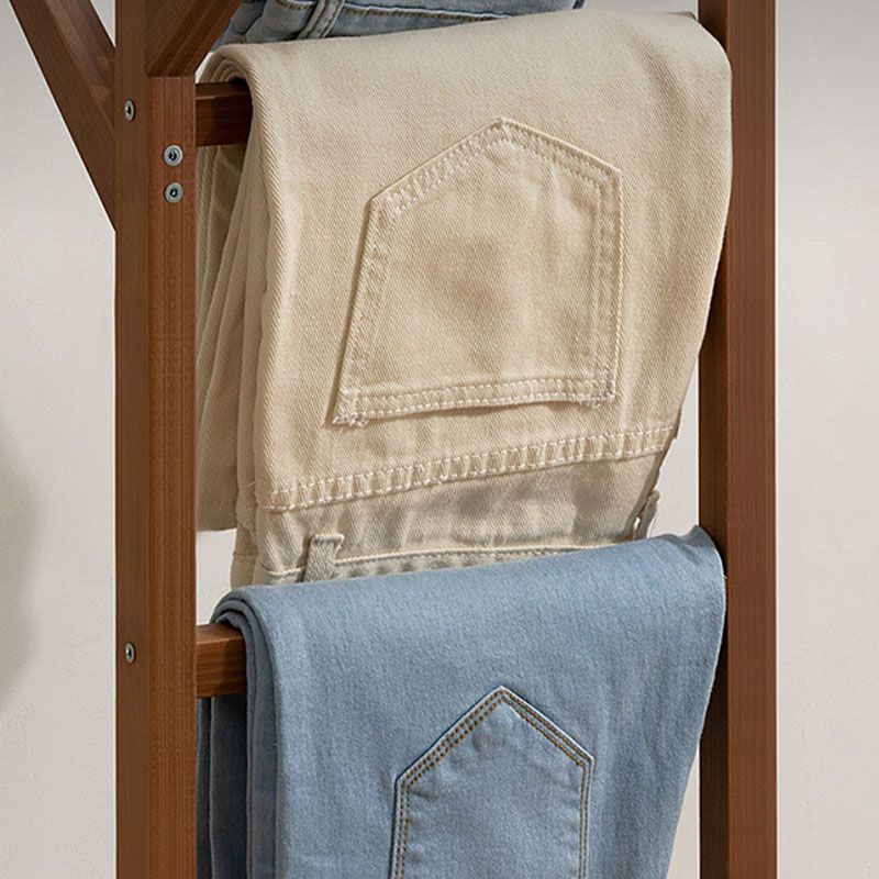 Les crochets d'étagères en bois de bambou en bois de bambou contemporain incluent un porte-manteau libre