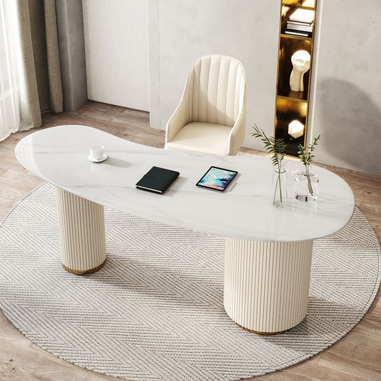 Bureau d'écriture en pierre contemporaine Bureau de bureau de chambre à coucher en blanc avec 3 tiroirs